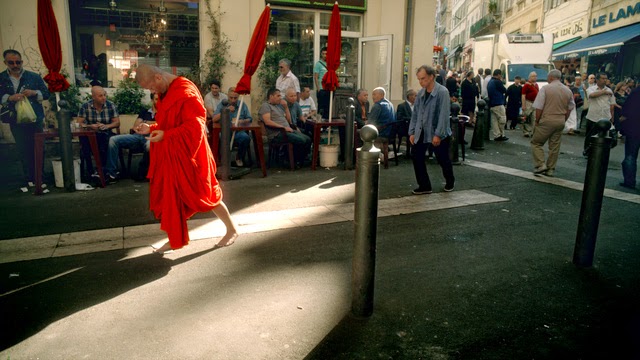 Made up of what must be less than 15 shots, Journey to the West was a majestic and joyous change from the other films I’ve seen at Edinburgh Film Festival. The film follows a Buddhist monk as he ventures across the city of Marseille, moving at the slowest and smoothest of speeds. Each shot lasts several minutes and gives the audience time to zone in and out of the piece; our eyes always returning to the priest who makes his gradually progress across the screen. Director Ming-liang Tsai is not only capturing a form of meditation but is also encouraging one from his audience. Such unconventional viewing is at first a challenge but it gradually enchants you into joining its peaceful rhythm. Whilst the monk’s movements remain the same throughout, the camera is free to experiment. Each shot captures something new and challenges us. We engage in this gentle development, looking out for the beloved man making such a deeply spiritual journey, as each new shot begins. It is an exaggeration to say that this is a film that brought to me some kind of inner peace. What it does do is make you aware of how quickly your thoughts are used to moving. Journey to the West‘s greatest achievement is the way that it makes us aware of the fast pace we live at. Not only the tempo we see around us in the modern world, but the aggressive momentum at which we function internally. Journey to the West is a challenging and therapeutic experience. Much like the monk it depicts, this film expects us to dedicate ourselves to severe inner concentration in order to get to our rewarding destination. Not only is it a joy to watch the conviction of one exceptional man but it is amusing to watch the reactions to those around him. Journey to the West is a fascinating commentary on our world, our nature and the potential of the human soul.