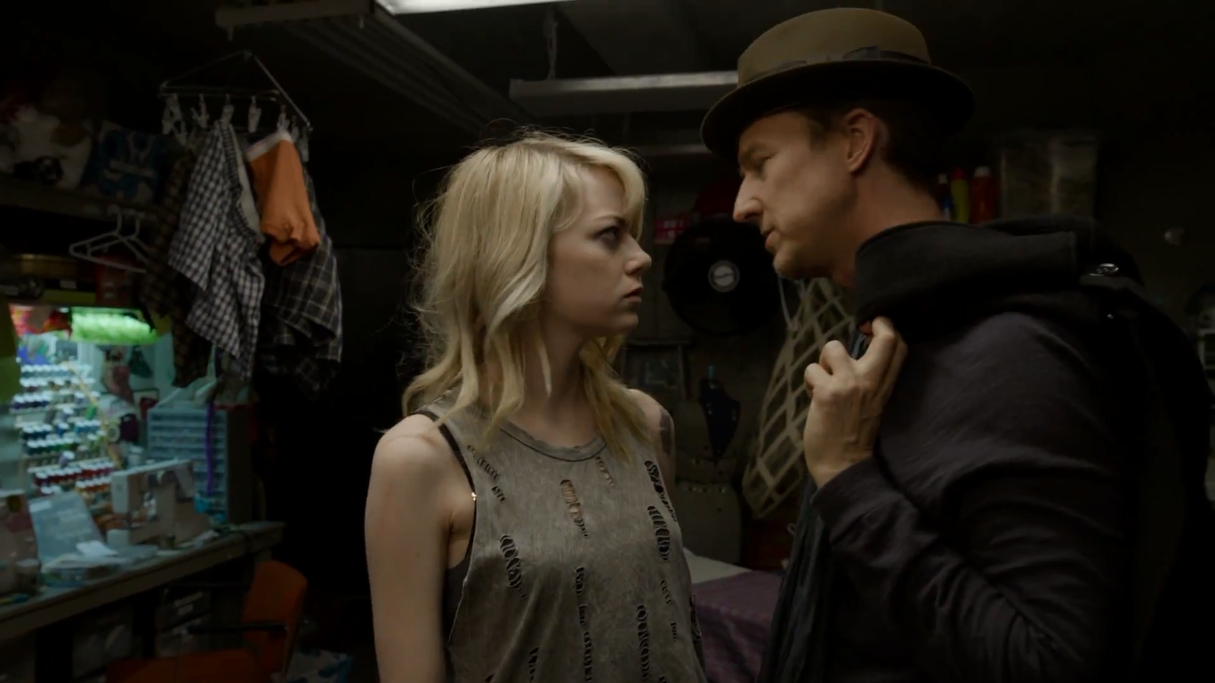 The majority of Birdman was shot on location in a New York theatre, a setting that contributes greatly to the film’s aesthetic. The corridors are narrow and stretched – much like Riggan’s time, energy and finances. Actors, costume designers, journalists and lawyers bustle up and down the theatre’s skinny halls, each one bringing more drama, ego and panic to the project. The film’s ambitious use of long takes is admirable but ultimately distracting. Birdman would have benefited more from long takes separated by strong, bold cuts in-between. The struggle to try to connect every scene and disguise the editing ends up being all the more obvious and irritating. Still, you have to admire the film’s attempt to create seamless cinema. The camera rotates constantly, giving the impression of effortlessness and curiosity. Our eyes are forced to sweep, pivot, zoom and invade. The issue with having such a constantly involved viewpoint is that we see the way the actors react to the camera. In some scenes they are unaware of the machinery swooping around them as they perform and only moments later they are playing up to the camera – energised by its presence and altered because of it. I don’t intend this to be a criticism of the film’s quality but simply an observation as to how much I was focussed on the technical; all the time distanced from the story and character development. It’s hard to like any of the characters in Birdman but that doesn’t mean it’s hard to like the movie itself. Rarely do films re-enact life in this way – flawed, inconsistent and damaged by many distractions and technicalities. Birdman would be so effortless to like were it not for the final twenty minutes. The film has four or five great opportunities to conclude but it ignores them all – clattering towards a clumsy conclusion in a poorly crafted and anti-climatic final act. Birdman gives you lots to digest but, like any fine feast, there are sadly several sharp little bones that spoil a moment or two. Luckily Birdman contains enough rich gravy which packs enough flavour to soften the blow of the last minute bits of gristle lurking under the meat. It’s quite far from being perfect but it’s certainly impressive. Come and experience the quaint charm found in a theatre that can hardly contain the numerous egos that lurk inside of it. This is a complex movie and I keep finding myself with more and more to write about it. Birdman is blissfully self aware and revels in its twisted characters that it already knows we won’t be able to like.