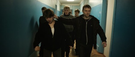 The Tribe is also about youth and highlights this by creating an almost entirely adult-less world. The adults we encounter are only ever being used by the students as customers or opportunities; they have no voices here. Slaboshpitsky conjures up a world where the leaders are the young, reckless and dangerous in their angst and frustration. However spontaneous and rebellious each character may seem – there are rules here. The students must remain loyal within the ranks of the tribe and be quick to unite against a threat or betrayer. Like any type of dictatorship – the members operate through fear although this is only subtly explored. The characters are comrades and not friends. When two students become intimate and they explore their emotional feelings, (the relationship displayed on the film’s already iconic poster), they begin to slide towards a brutal downfall. Slaboshpitsky’s camera either tiptoes behind the characters, following them down winding corridors or up cold concrete stairs, or stands still, far away and documenting their movements. The Shining meets Planet Earth in this captivating study of man’s most deprived and destructive capabilities and the most extreme consequences of the vulnerability of youth. The Tribe is aesthetically comparable to the mesmerising, but miserable, work of Michael Haneke. Haneke, known for putting his audiences through similarly gruelling and insufferable experiences, shares the under-saturated aesthetic captured by first time cinematographer Valentyn Vasyanovych in The Tribe. Peeling, icy, blue walls and concrete floors provide the film’s cold frame. The school itself is a concrete prison in which the weak are identified and ridiculed. We don’t spend much time with anyone outside of the tribe so it is their vision of this world that we see.